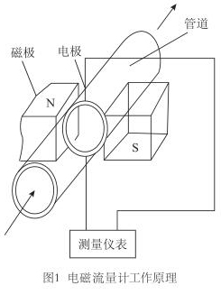 智能電磁流量計是應(yīng)用電磁感應(yīng)定律,即:導(dǎo)電體在磁場中運動產(chǎn)生感應(yīng)電動勢,而感應(yīng)電動勢又和流量大小成正比,通過測電動勢來反映管道流量的原理而制成的,用來測量導(dǎo)電流體的體積流量(見圖1)。工業(yè)上多用以測量水、礦漿、各種酸、堿、鹽等腐蝕液體等介質(zhì)的流量。